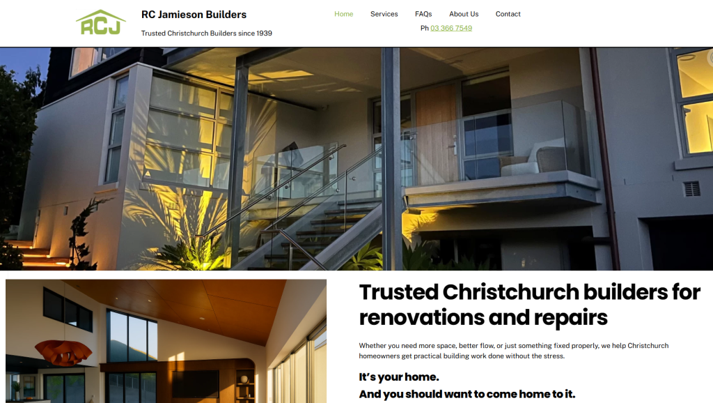 The result is a site that provides potential clients with a better understanding of what to expect, while also helping them see why RC Jamieson Builders remains a respected name in Christchurch’s building circles. It was an absolute pleasure to work with Nigel and Jacqui on this. They care deeply about doing the job right, and now they have a website that showcases it.